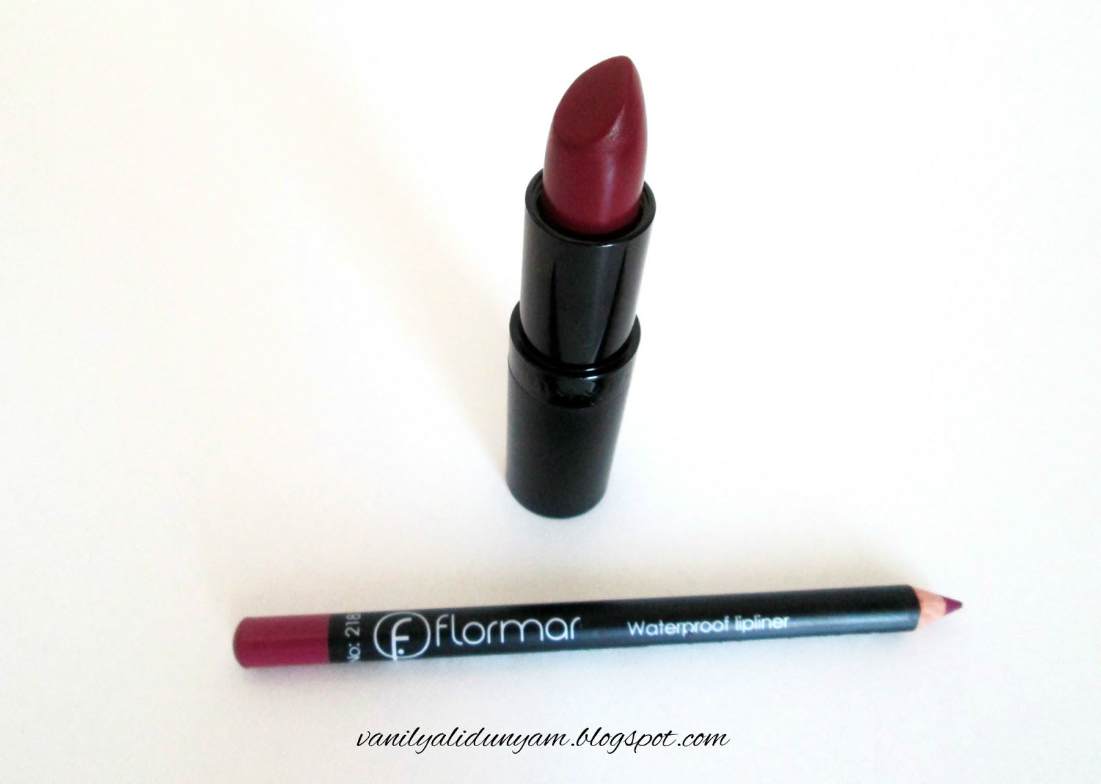 Bordo ruju bulmuşken bir de ona uygun dudak kalemi almak lazım tabi.Rujun en yakın bulduğum dudak kalemi Flormar Waterproof dudak kalemlerinden 218 numarası oldu.