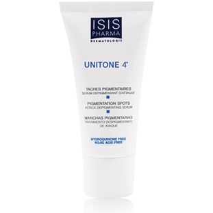 Isis Pharma Unitone 4 Koyu Renkli Cilt Lekeleri İçin Krem renk açıcılarla melanin üretimini sınırlandırmayı ve ciltteki renk düzensizliğini düzeltmeyi hedefliyor.